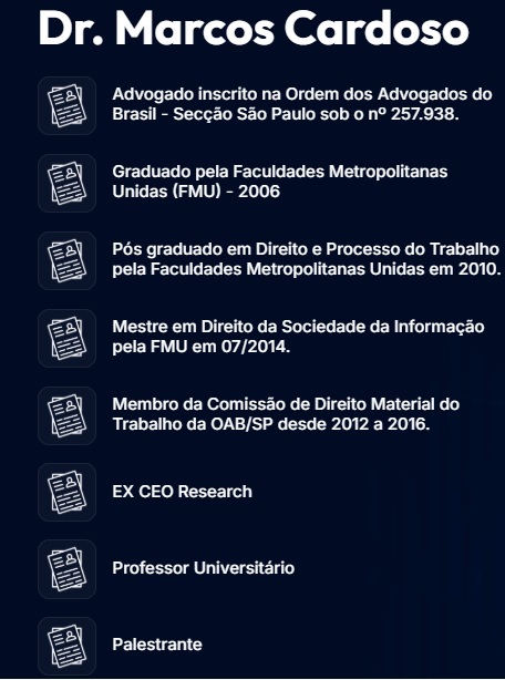 Conheça nosso sócio Dr. Marcos Cardoso, especialista em Direito Trabalhista para bancários: |