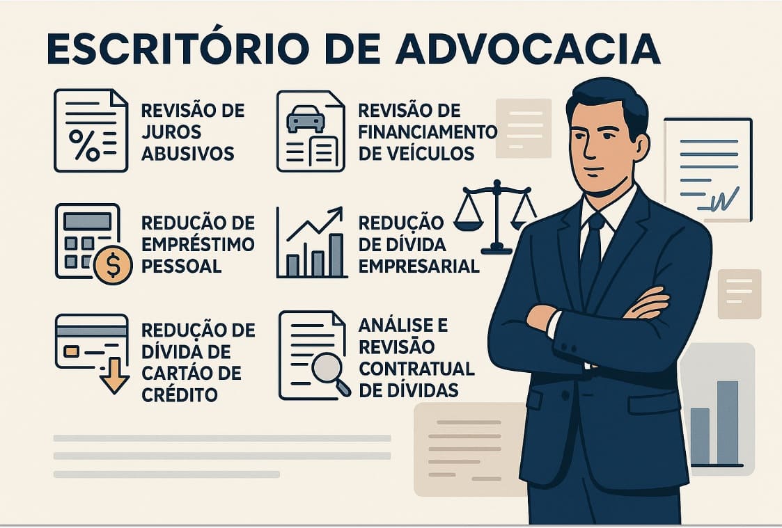 Análise e Revisão Contratual de Dívidas: Exame minucioso de todos os tipos de contratos de dívida para identificar ilegalidades, abusividades e propor as medidas judiciais cabíveis.